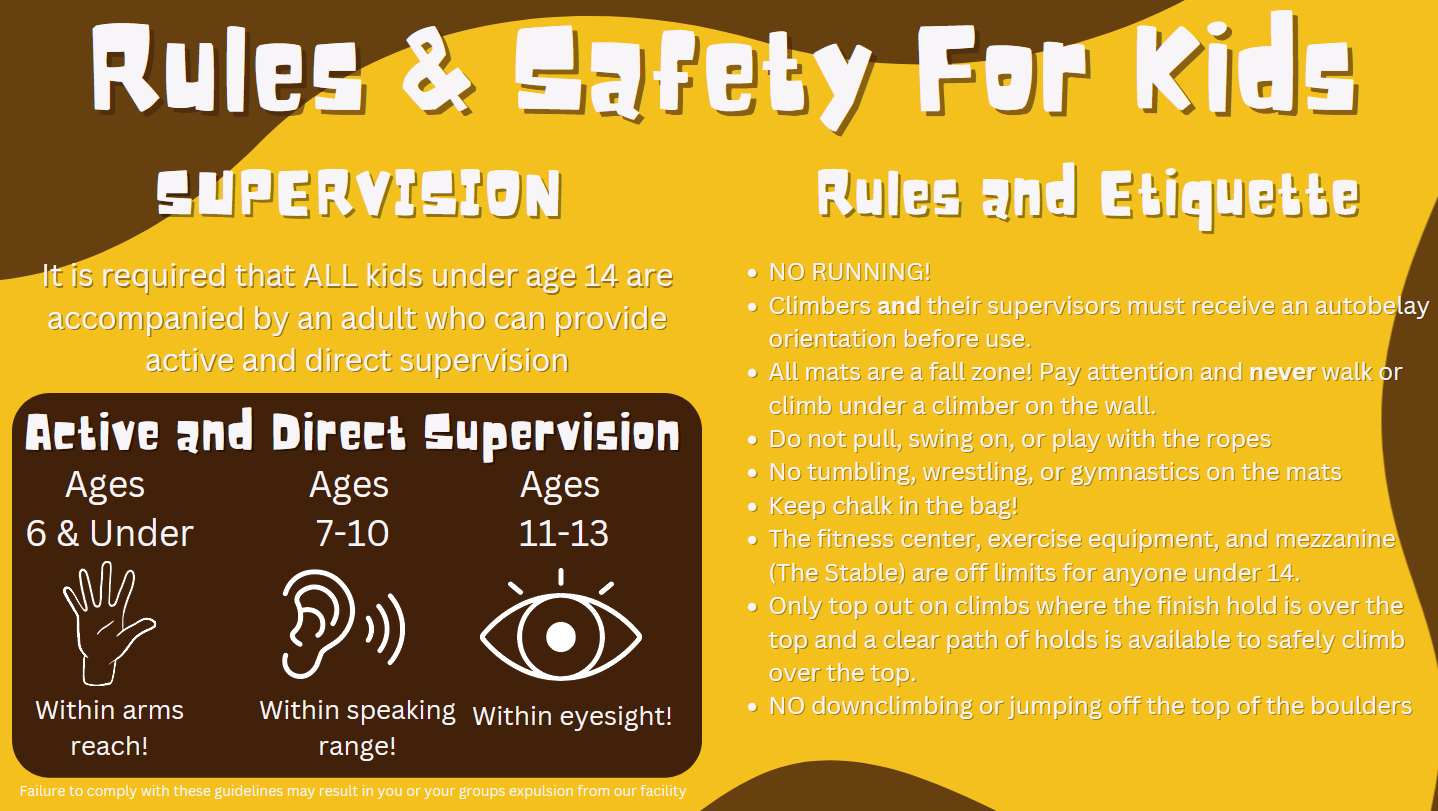 Parents and guardians are responsible for the behavior of their children, including compliance with all rules and policies, while at MetroRock.