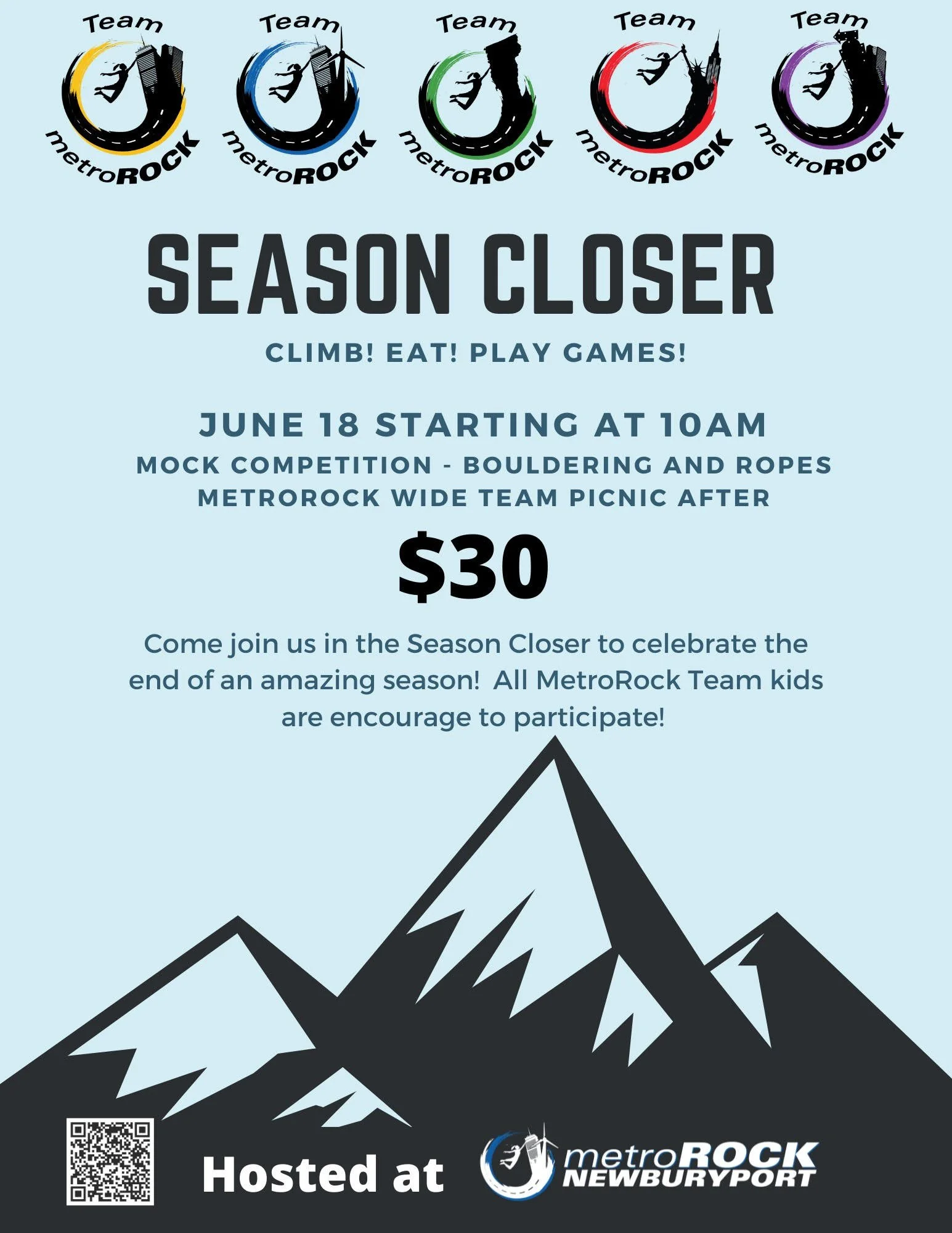 Back to All Events Season Closer Competition Saturday, June 18, 2022 10:00 AM 4:00 PM Metrorock Newburyport United States (map) Google Calendar ICS